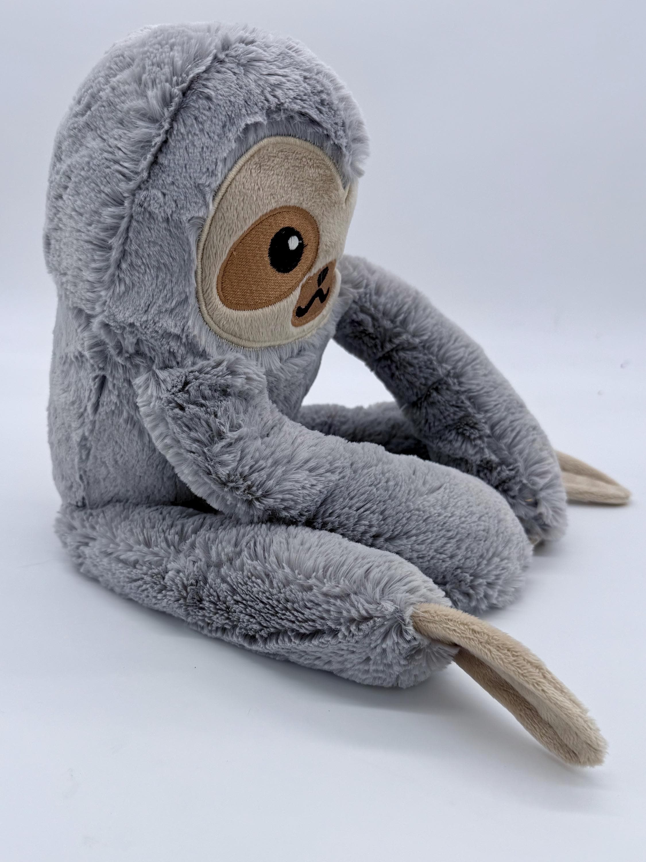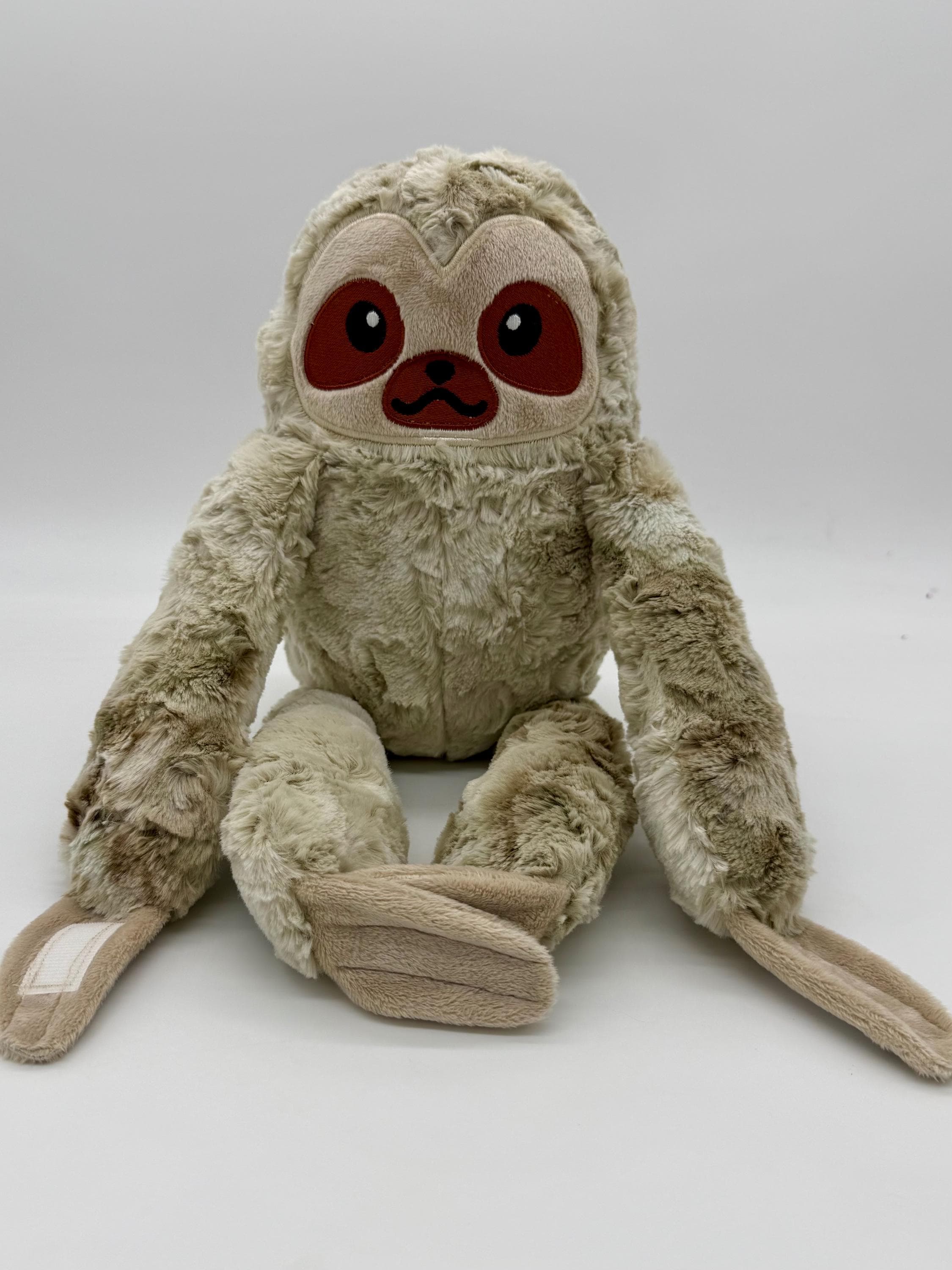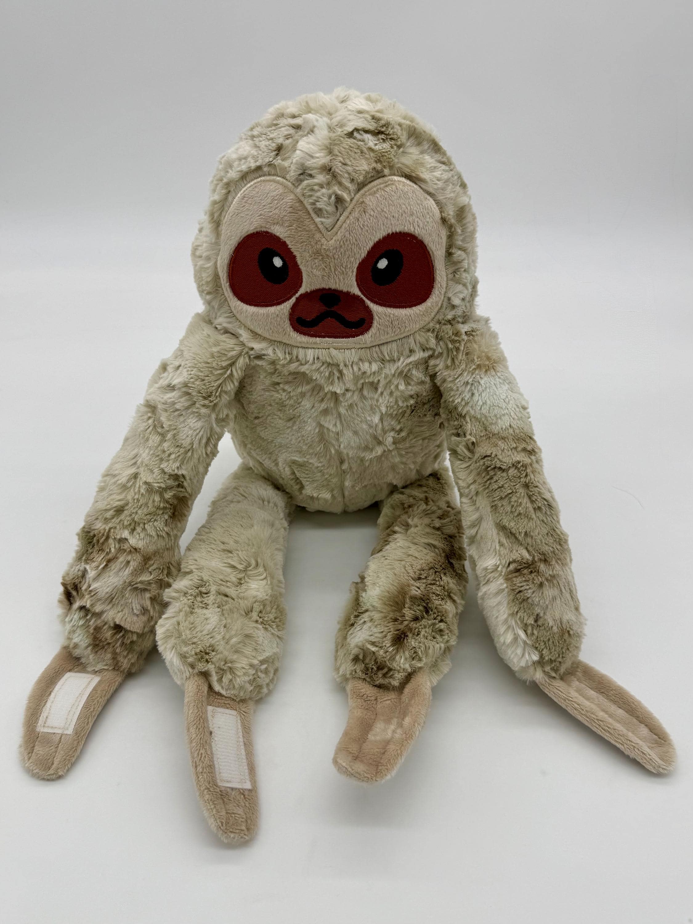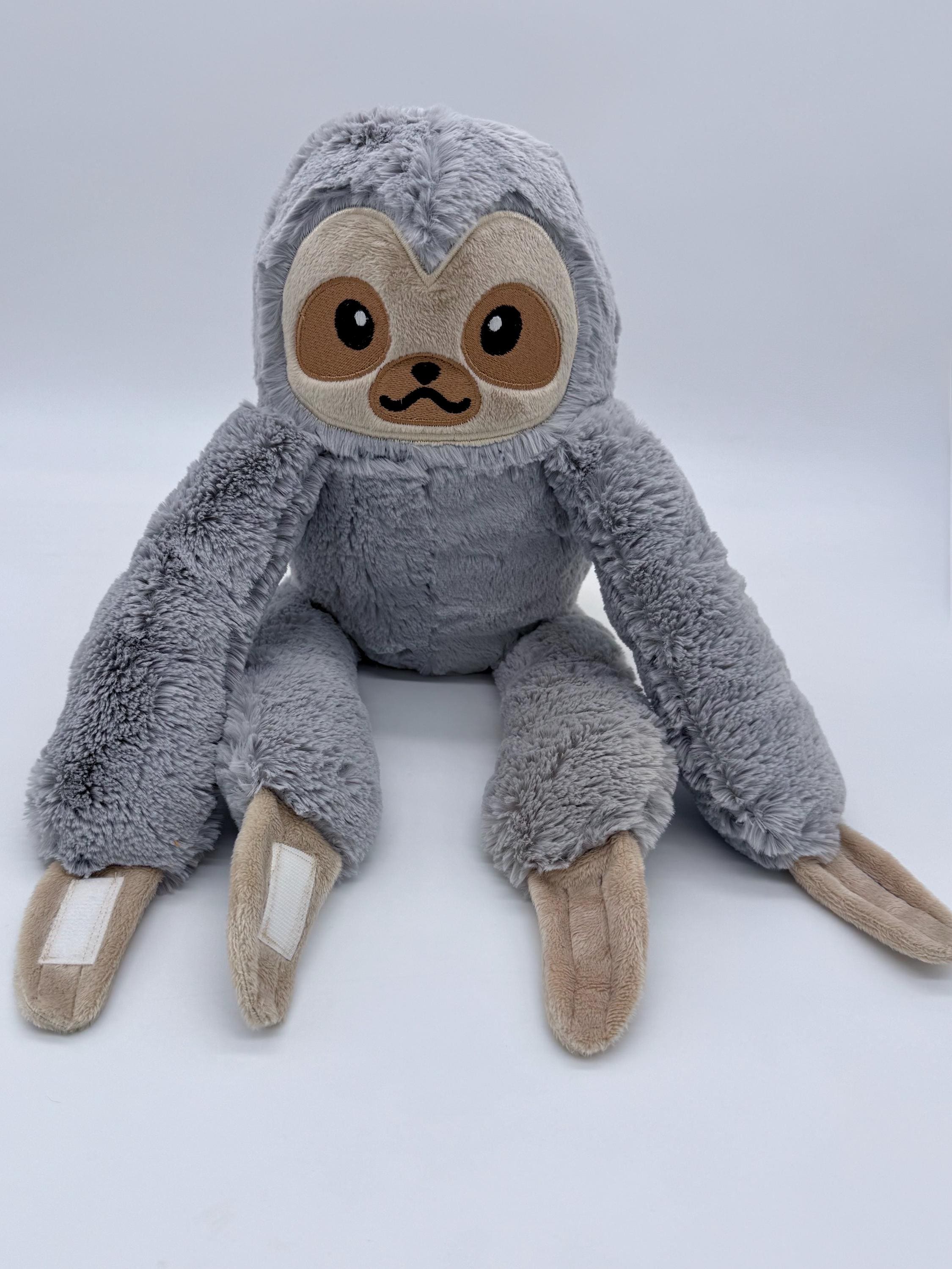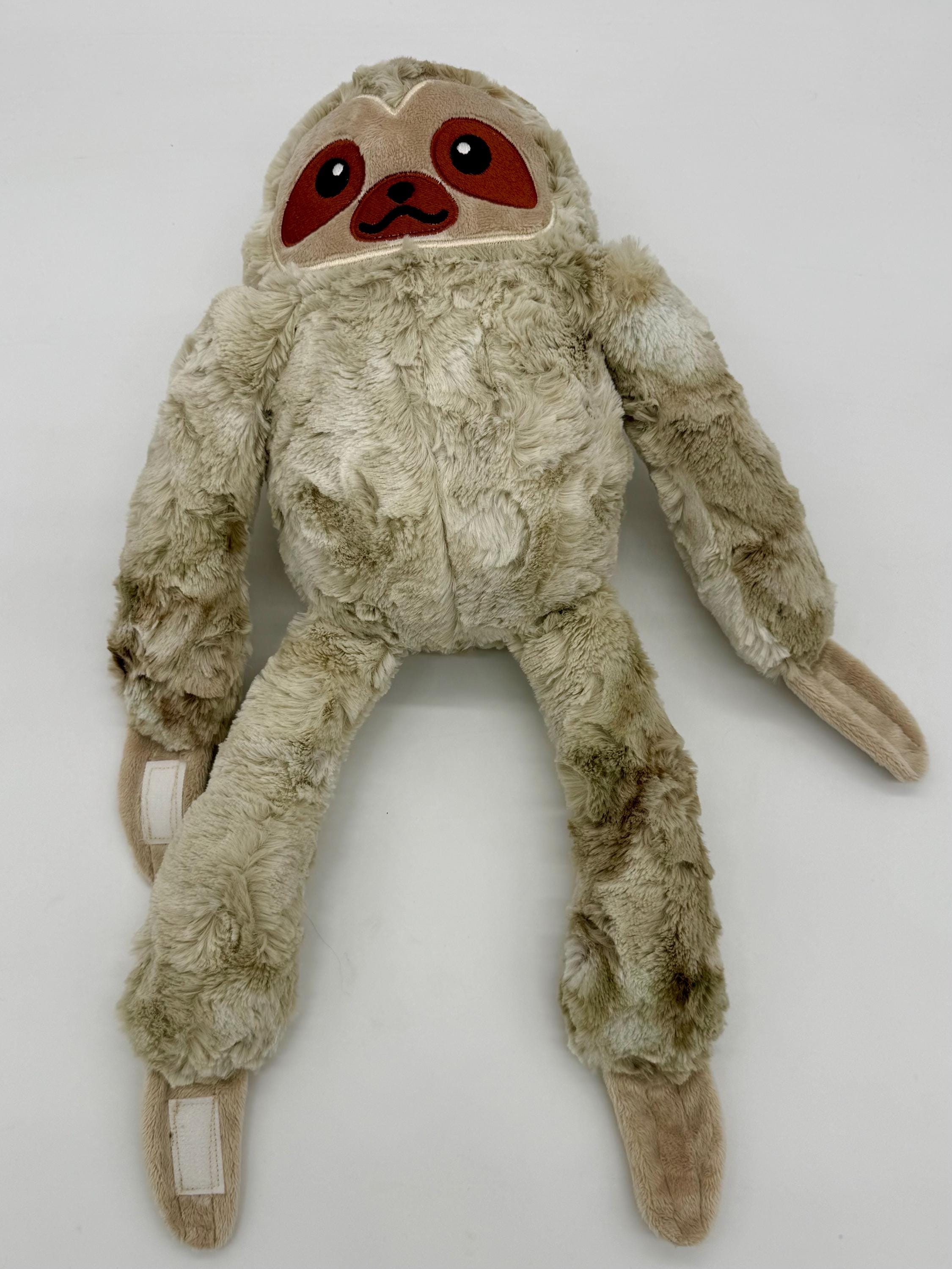 This cool sloth plush is a wonderful cuddly companion for anyone. Made with wonderfully soft materials and an embroidered face it is suitable for children of all ages and adults alike. The arms and feet are floppy, The hands and feet have velco patches so the plush can hang from arms, doorknobs, clothe hangers or any thing you can think of.