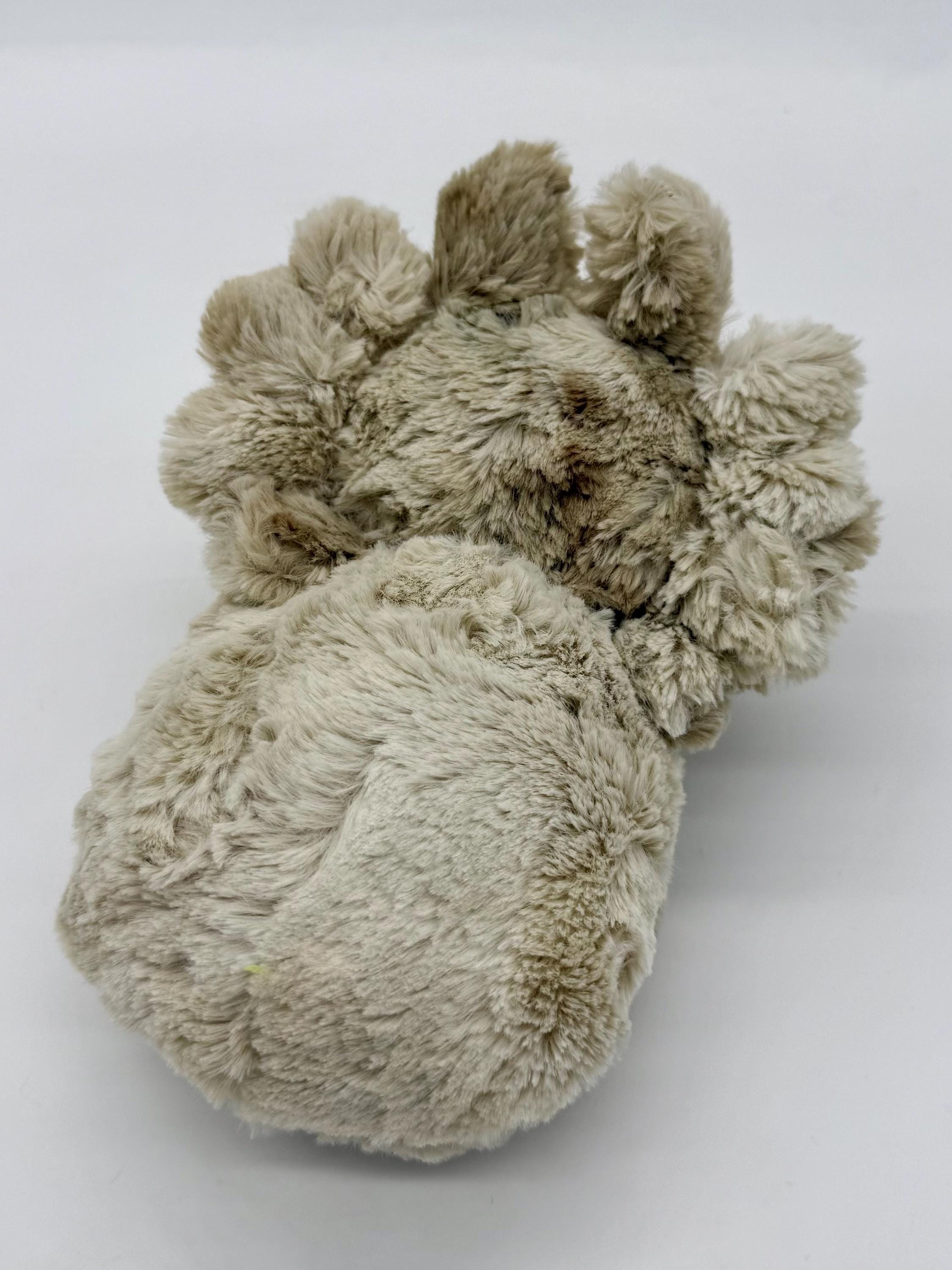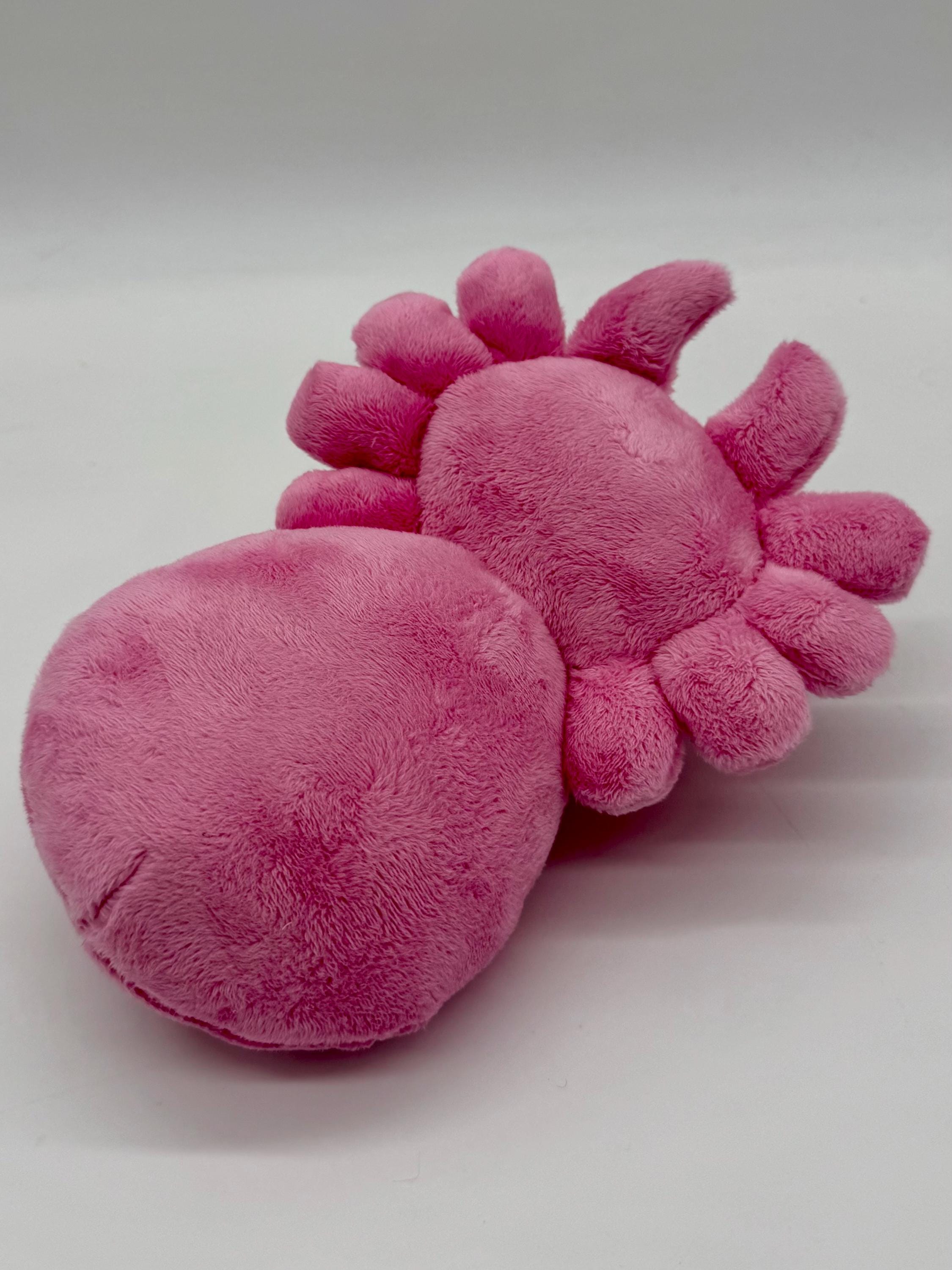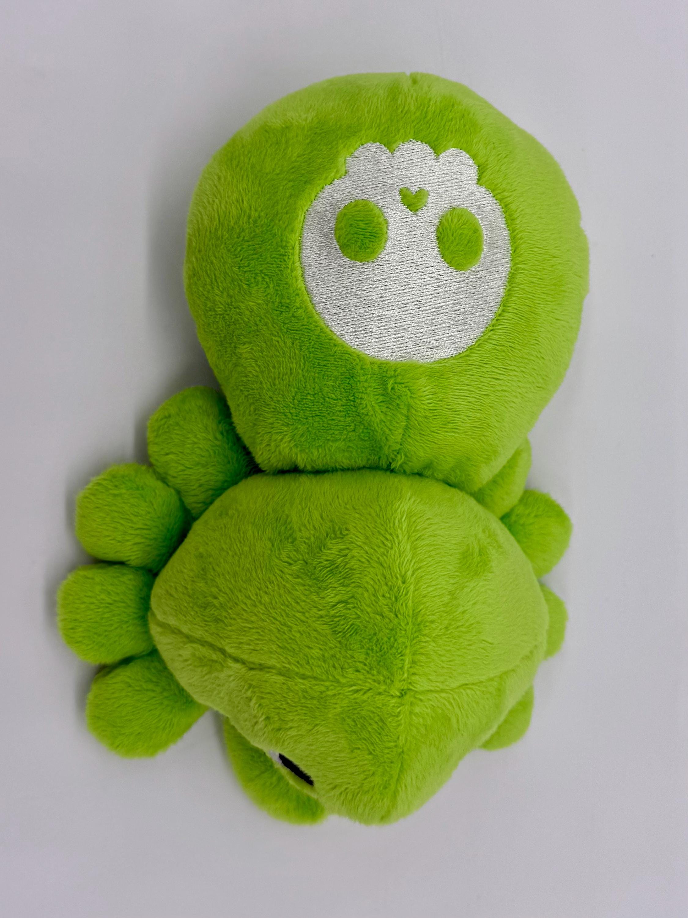 The plush is about 7" long, 5" wide and 3" tall and weighs about 5oz.
