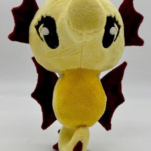 The plush is about 10" long, 4.5" wide and 6" tall and weighs about 7oz.
