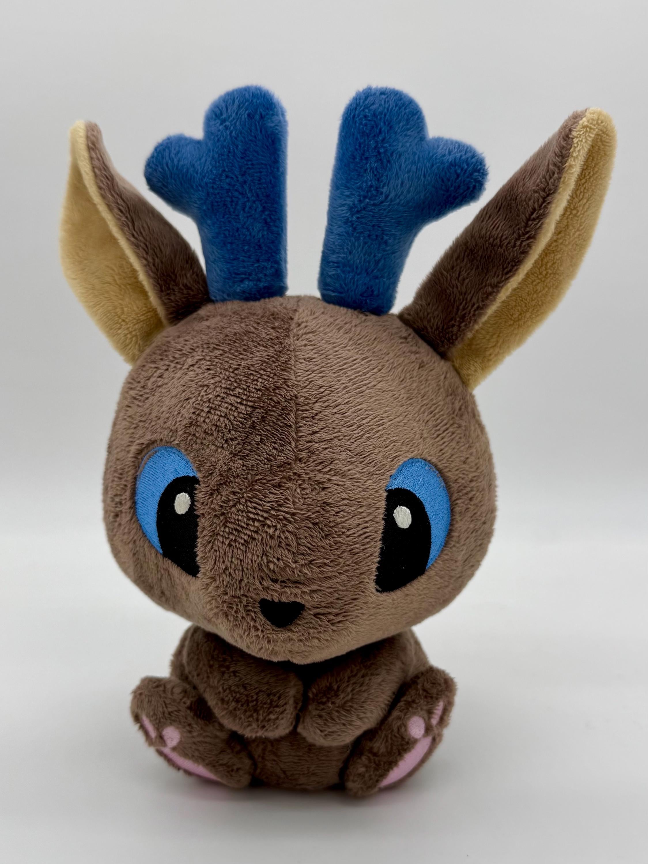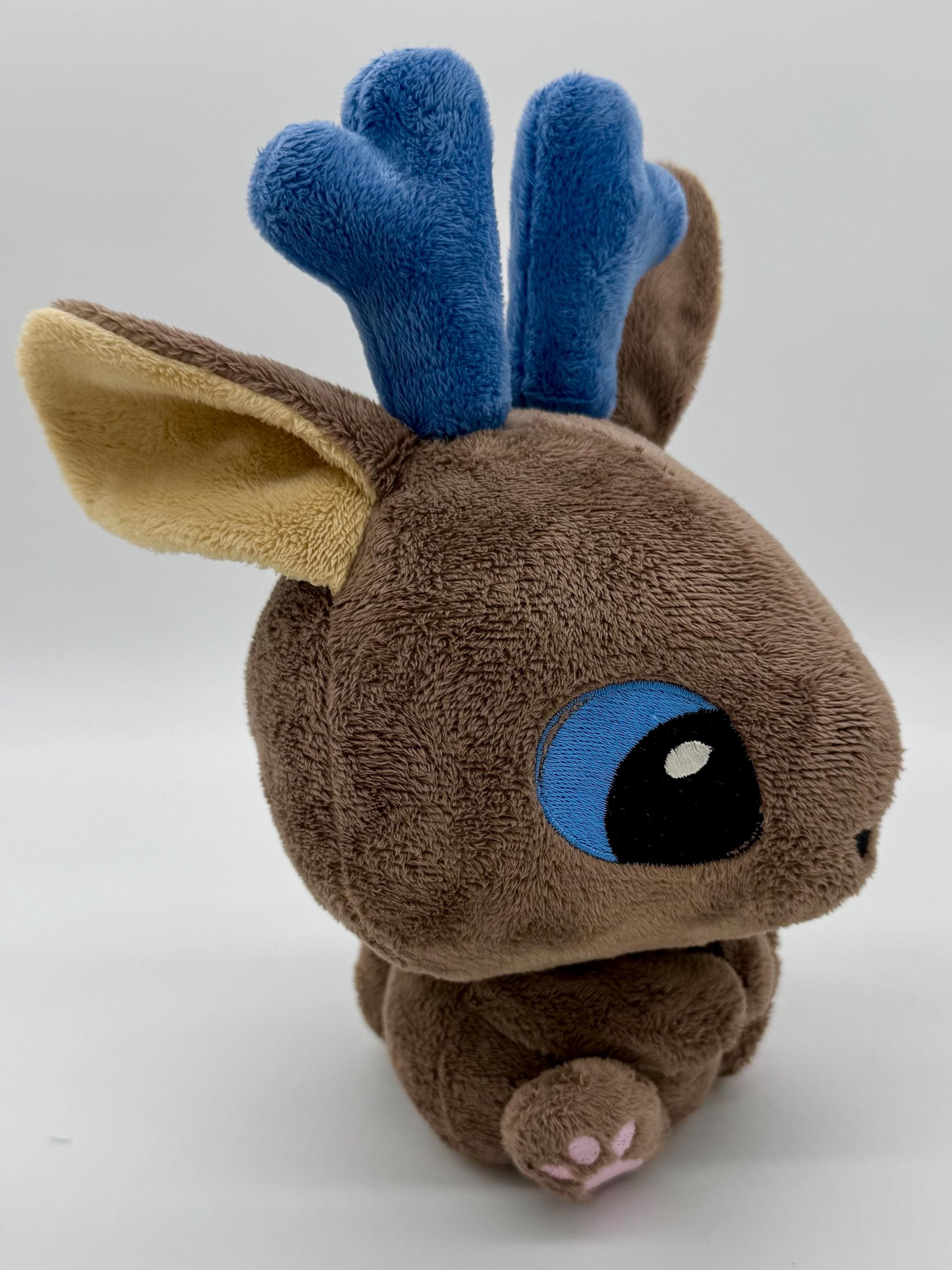 This goofy little jackalope plush is wonderful cuddly companion for anyone.