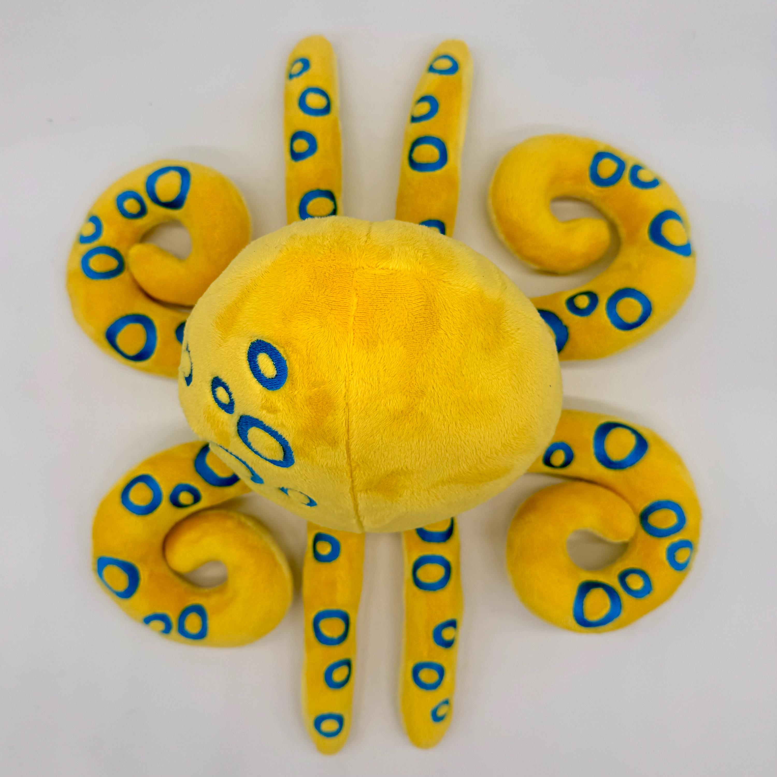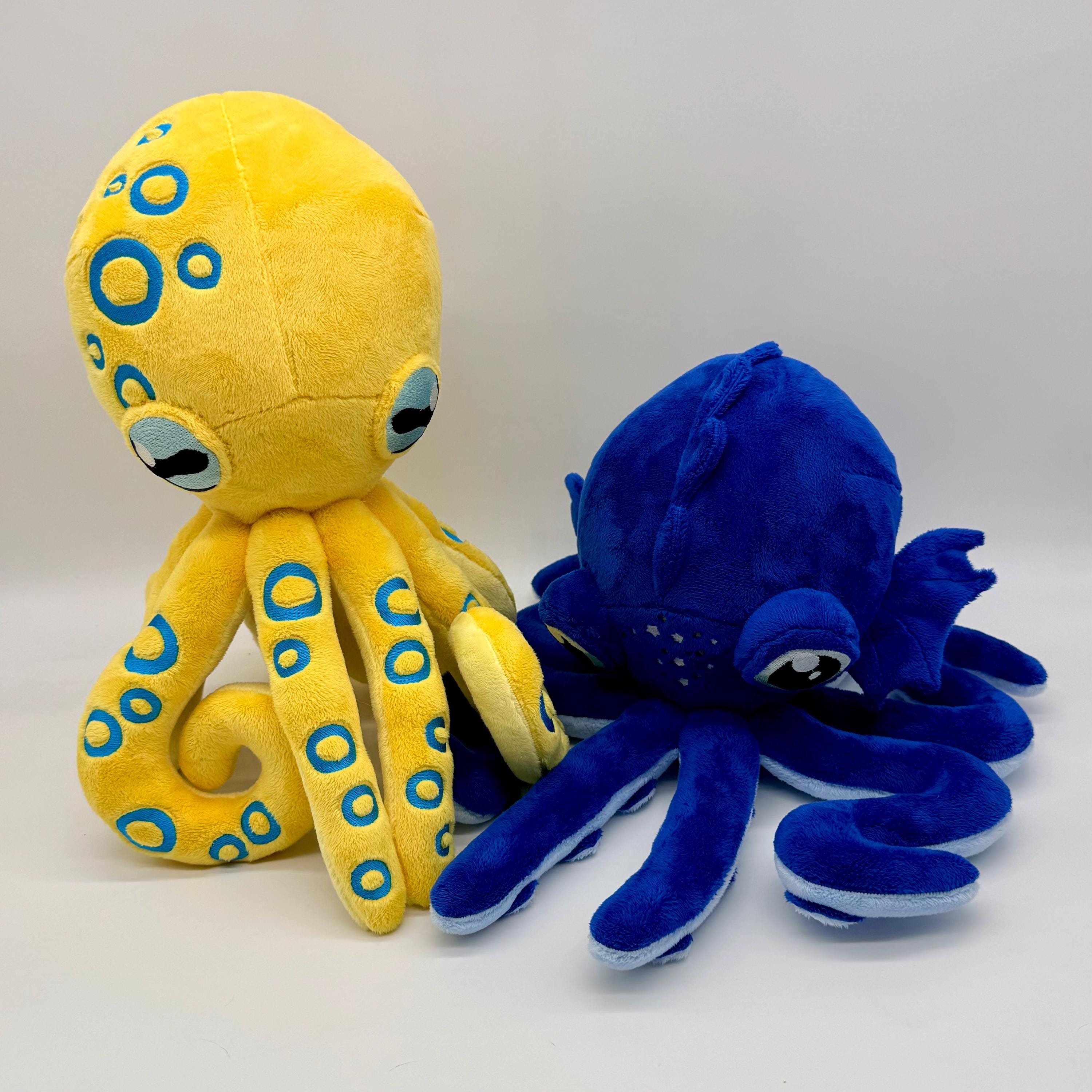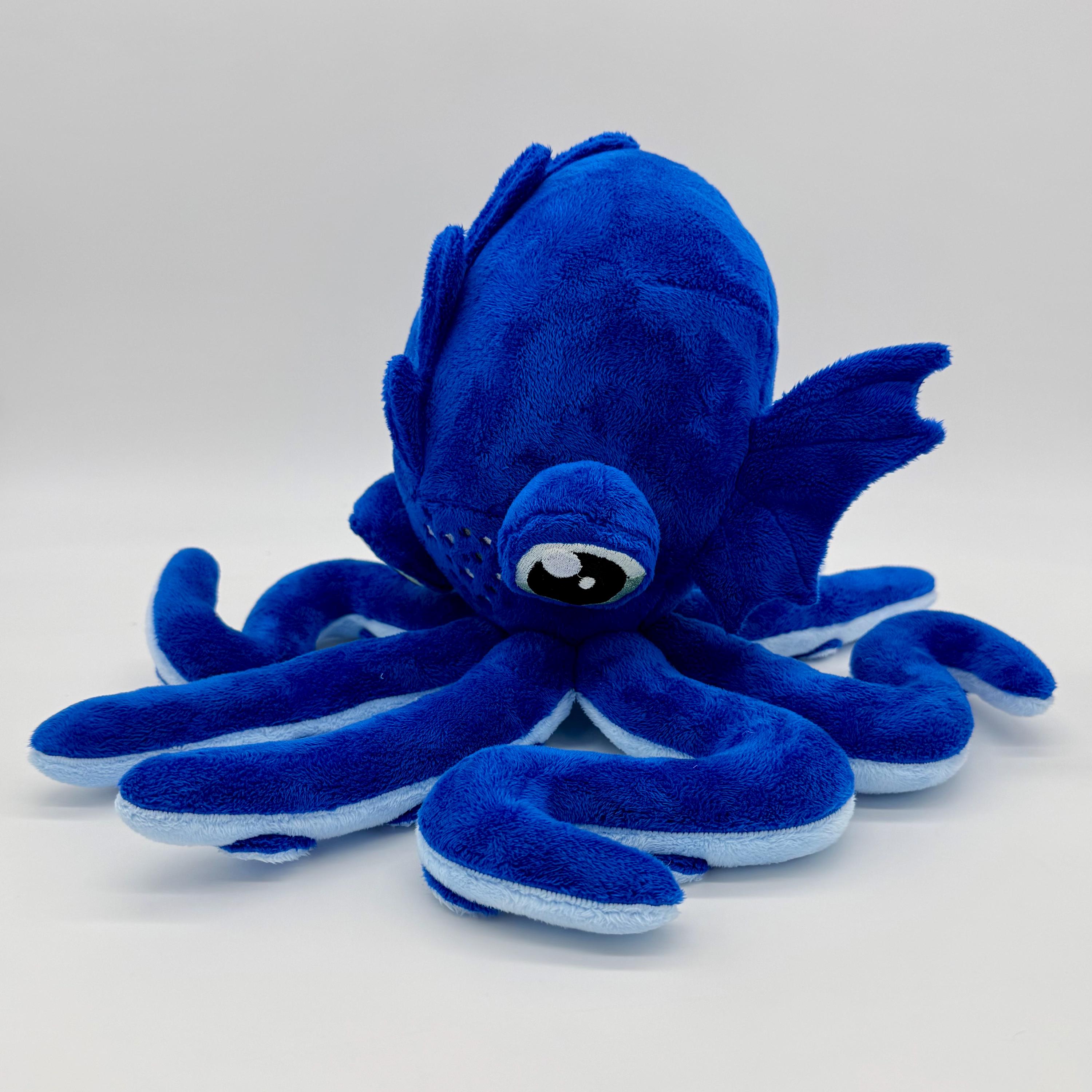 This amazing octopus plush is a wonderful cuddly companion for anyone. Made with wonderfully soft materials and an embroidered face it is suitable for children of all ages and adults alike. Choose between a blue ring octopus or a phantasy inspired octopus with spiked and suckers.